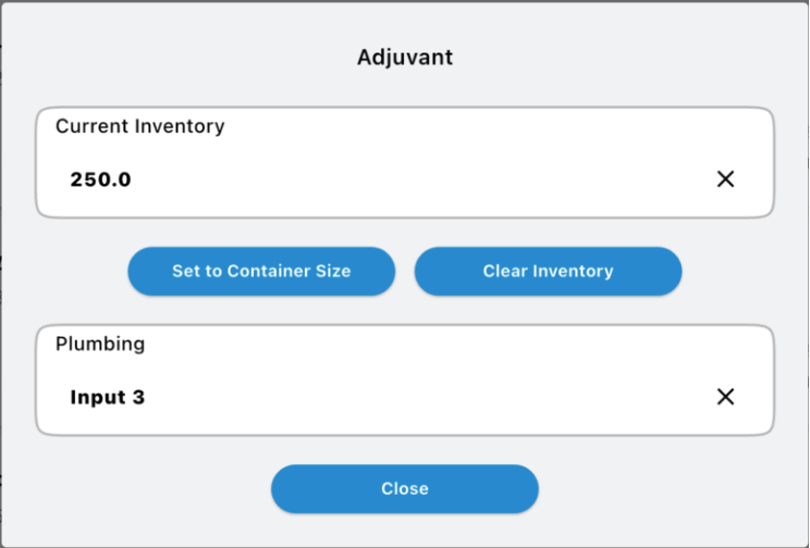 How to do it: Tap on the Product Card in your mix list. A window (modal) will open where you can select the correct input (e.g., "Inductor," "Tote 1," "Bulk Tank").