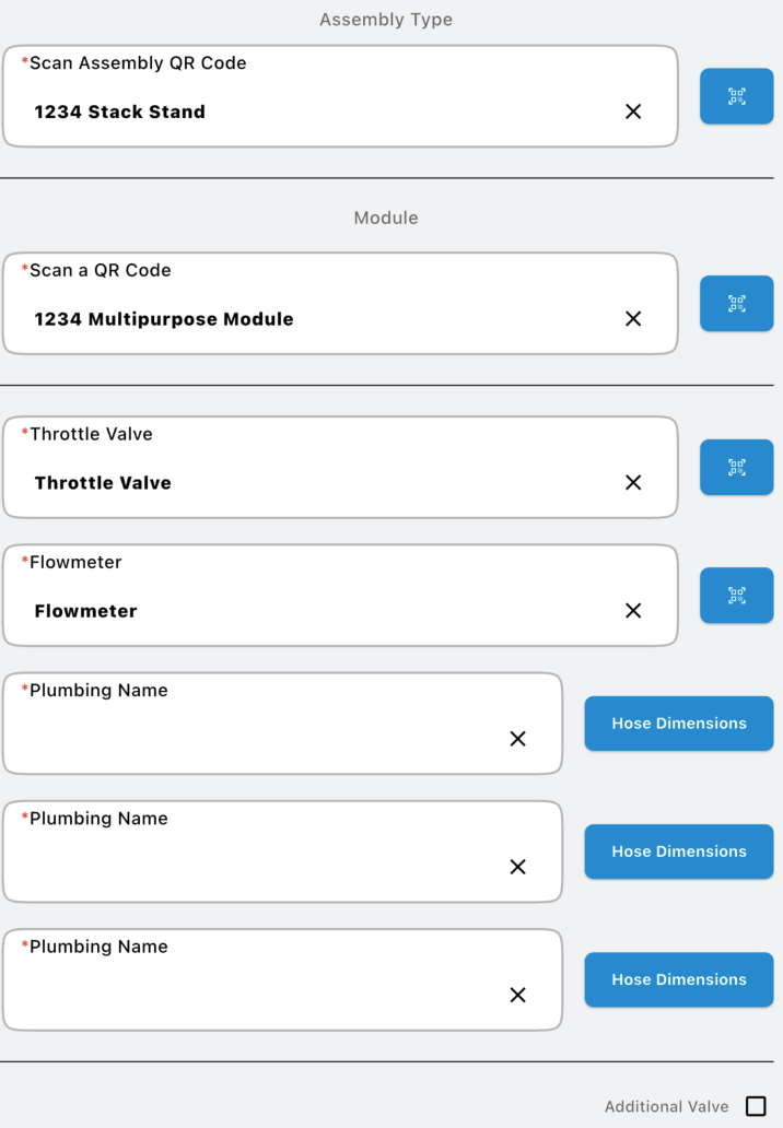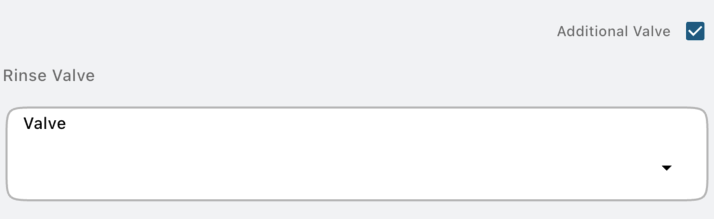 The additional valve checkbox is used when adding a valve to the top of the stack. The additional valve becomes the rinse valve and the valve below becomes a plumbing input. An additional plumbing input is added above this checkbox when true and an entry for defining the rinse valve is added below the checkbox.
