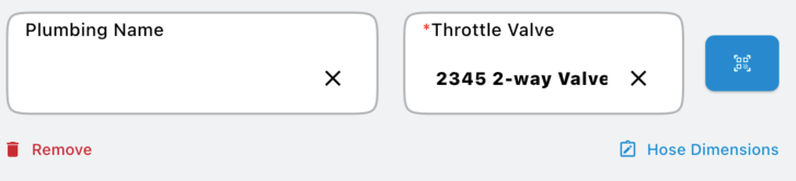 Each stack plumbing input receives its own name and also you can individually set the feed line size of the input using the Hose Dimensions entry. The plumbing inputs start closest to the flowmeter and work away from it.