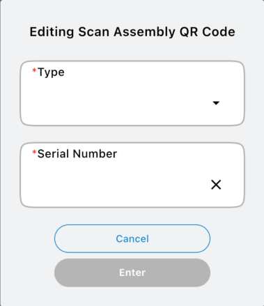 2. Either scan the assembly QR code or click in the entry field to enter the data manually.