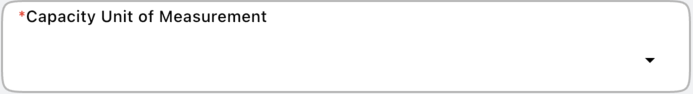The capacity unit of measurement describes the numerical value entered for the capacity. For example, "Gallons" would be entered to finish defining the 1200 from the capacity entry.