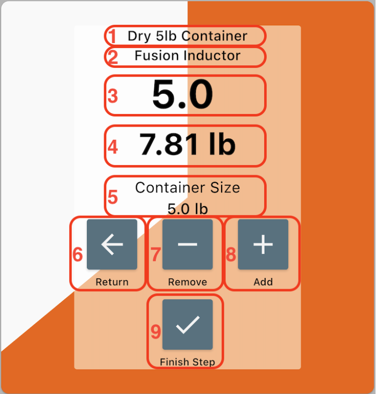 Finish Step: Press this when you have finished pouring all containers.