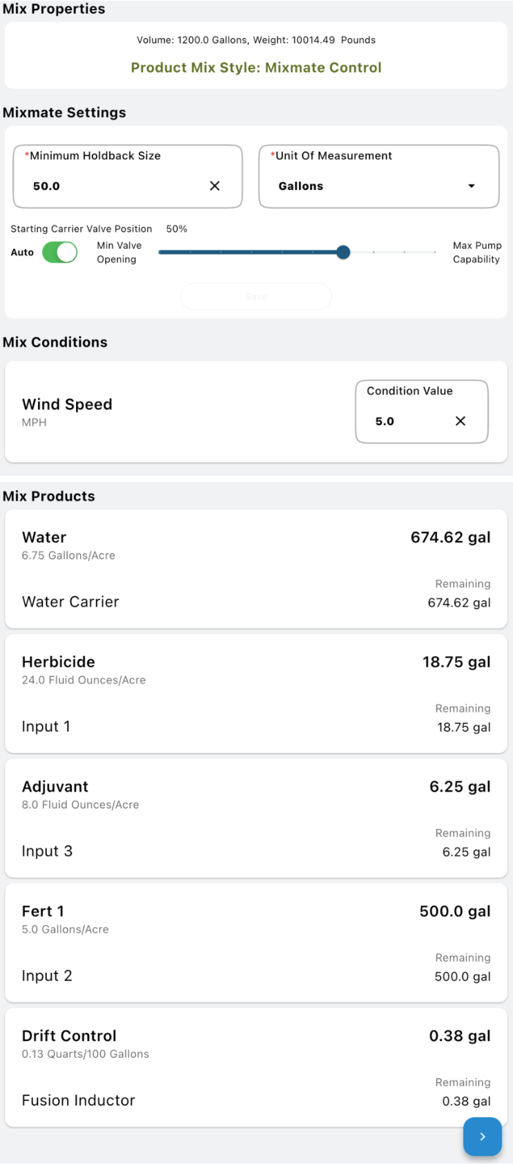 Product Name: Shows the name and the final target application rate.