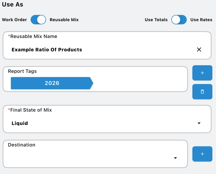 Select any report tags that you would like to associate with every time you use this to make a mix. Common selections here would be Crop Year, Crop, and Pass Type. You can find more information on the
