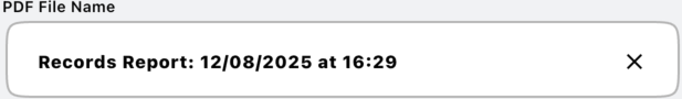 When you have found some records that you would like to generate a PDF report with, this button will be available in the lower right corner of the screen.